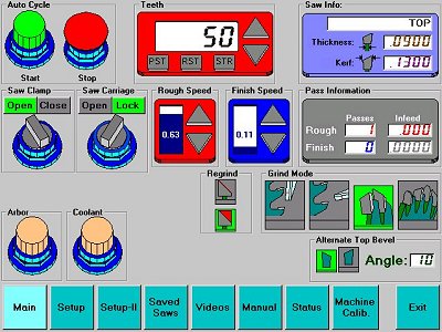 of teeth, wheel feed rate, stock removal for each pass, etc.) are easily stored on the PC